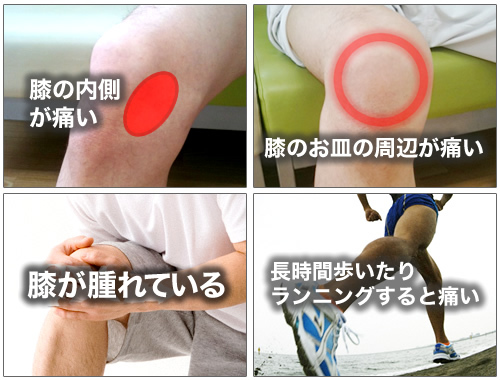 膝関節や周囲の筋肉の機能異常により滑液包や腱に加わると、炎症を引き起こし膝の内側が痛みます。